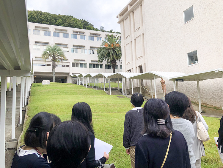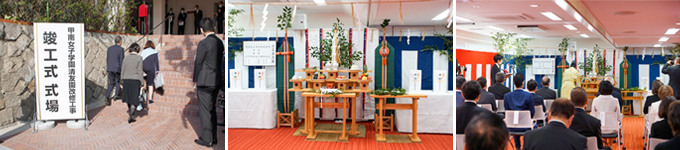 秋晴れのもと、中内理事長はじめ学園関係者の皆様、東畑建築事務所、並びに大林組の皆様がご出席くださいました。