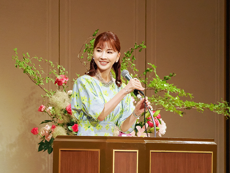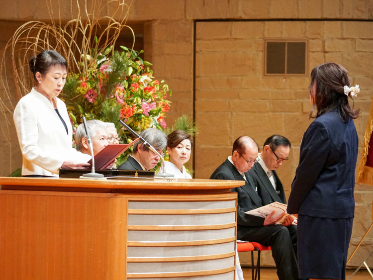 第一部総会では、令和6年度役員総会の報告と今年度の役員紹介をしました。秋元典子学長と米田明美校長より母校の現在の様子を、また恩師の奥田和子名誉教授と長尾きぬ代元中高教諭からは現在のご様子と懐かしいお話を伺いました。昨年度清友会奨励賞受賞のお二人からご挨拶をいただいて、第一部が終了。