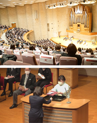 第二部の上方落語家桂吉弥氏による講演「落語と人生」では、ご自身の学生時代を神戸で過ごされた楽しいエピソードや、震災でボランティア活動を経験された後に弟子入りされた経験談のあと、心温まる夫婦愛を描いた落語「夢の革財布」をご披露いただきました。昨年落語家生活30周年を迎えられ、落語愛好家からも高く評価される話芸を存分に楽しむことができました。