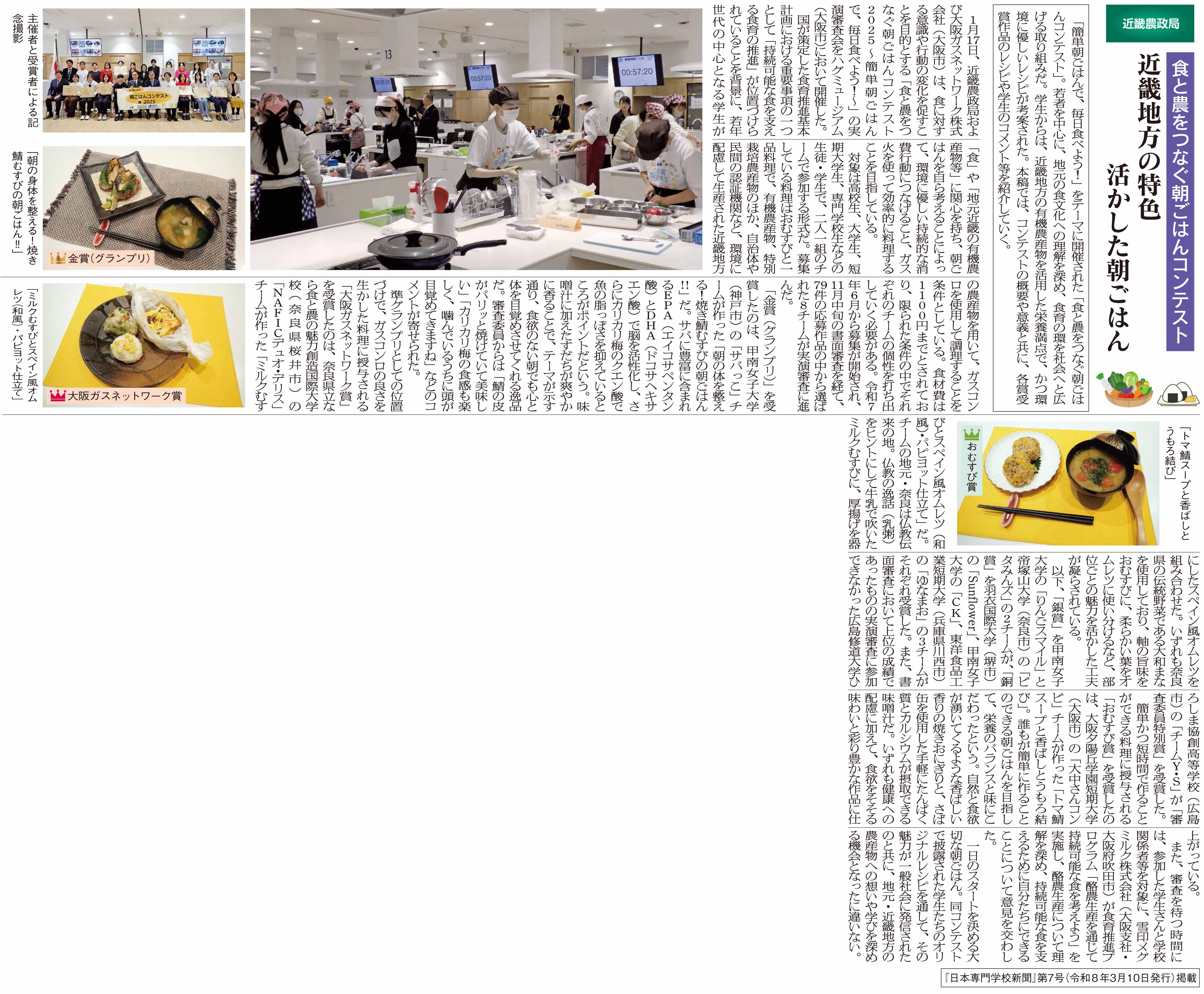 — 日本専門学校新聞および農林水産省近畿農政局HPに掲載 —