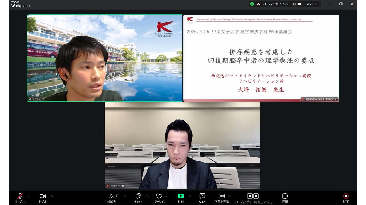 【理学療法学科】Web講演会「併存疾患を考慮した回復期脳卒中者の理学療法の要点」を開催しました。