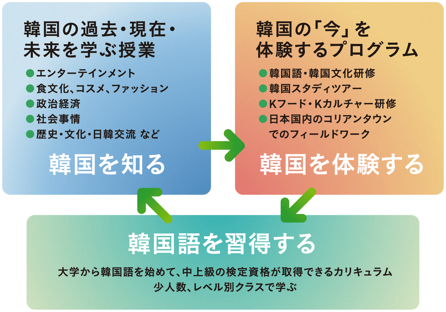 言語→知識→体験の流れを通じて、韓国への理解を深める