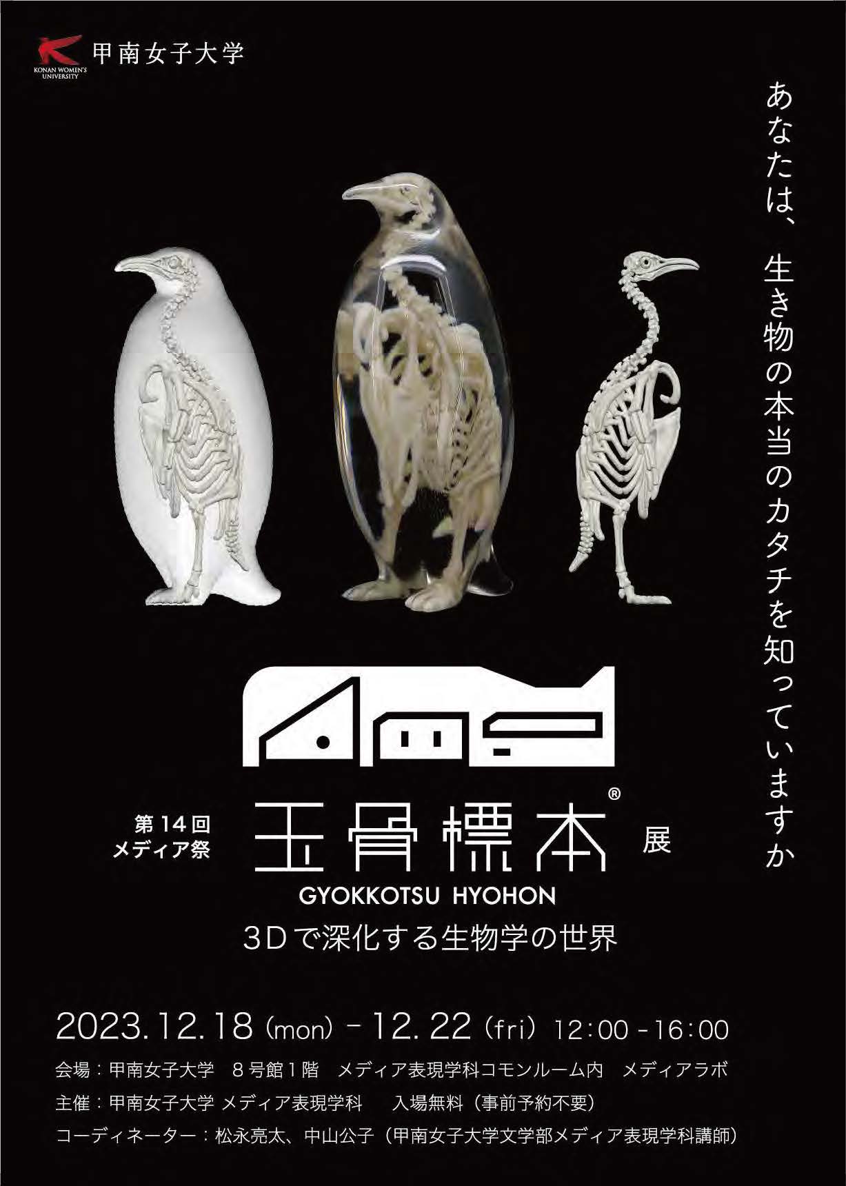 ◆第14回 甲南女子大学 メディア祭「玉骨標本 −3Dで深化する生物学の世界−」展 開催概要