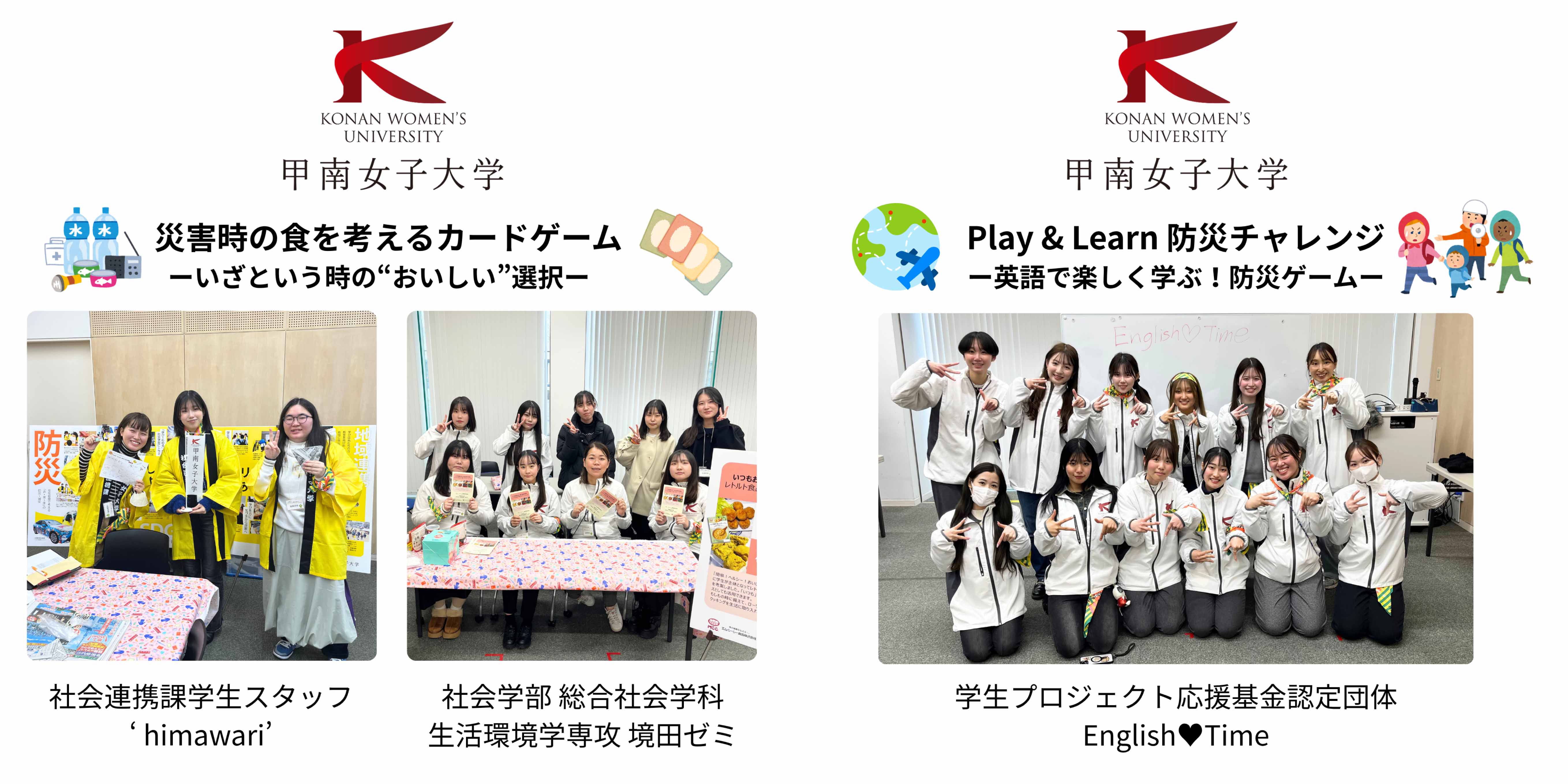 それぞれ大学生の視点と工夫が詰まったプログラムです。次世代へ防災をつなげる学びの場をお届けします。