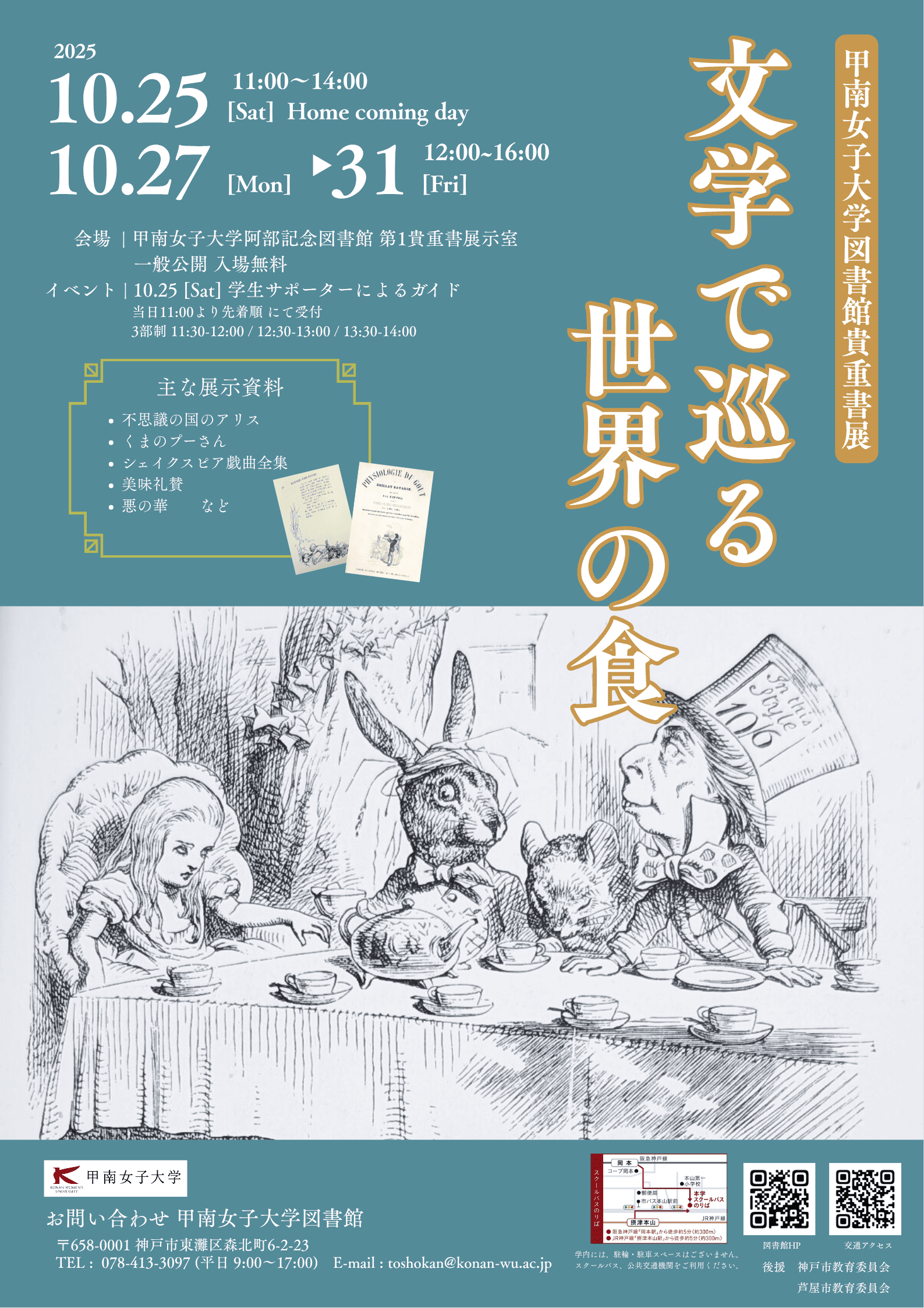 ポスターイラストは本学所蔵の『Alice's adventures in wonderland(不思議の国のアリス)』から引用しました。