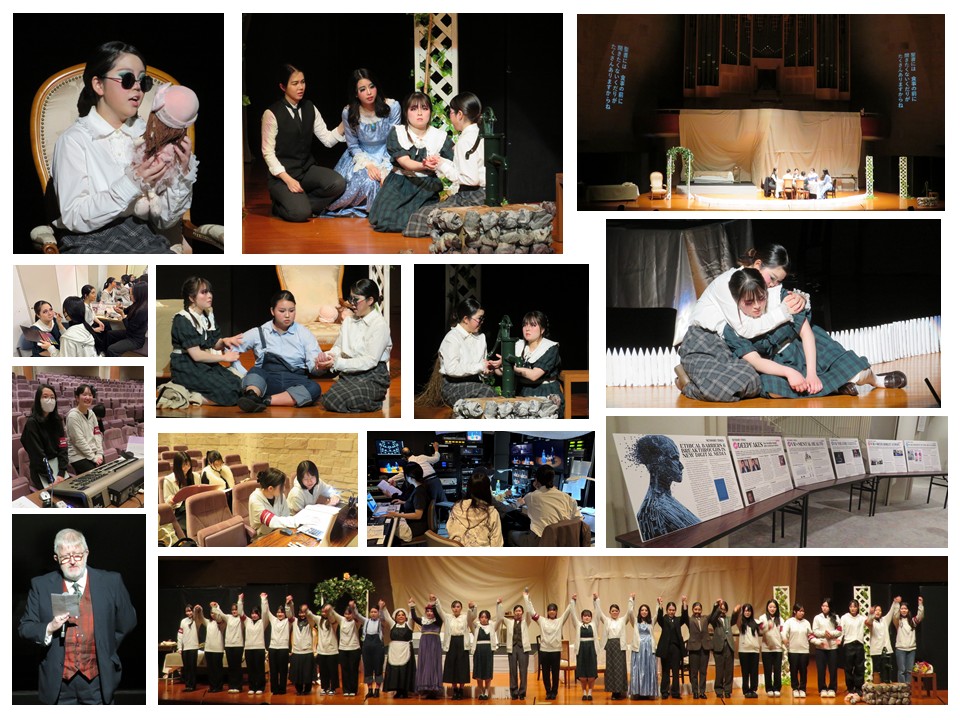 11月14日(金)、15日(土)には英語劇“The Miracle Worker”を甲南女子大学芦原講堂にて上演いたしました。キャスト・スタッフともに夏休みから活動を開始し、授業の合間を縫って練習や準備をしながら、国際英語学科3年生全員で協力し合い、素晴らしい劇を上演することができました。最終日のカーテンコールでは笑顔と涙の感動的なフィナーレで終えることができ、ご来場いただいた皆さま方に感謝申し上げます。