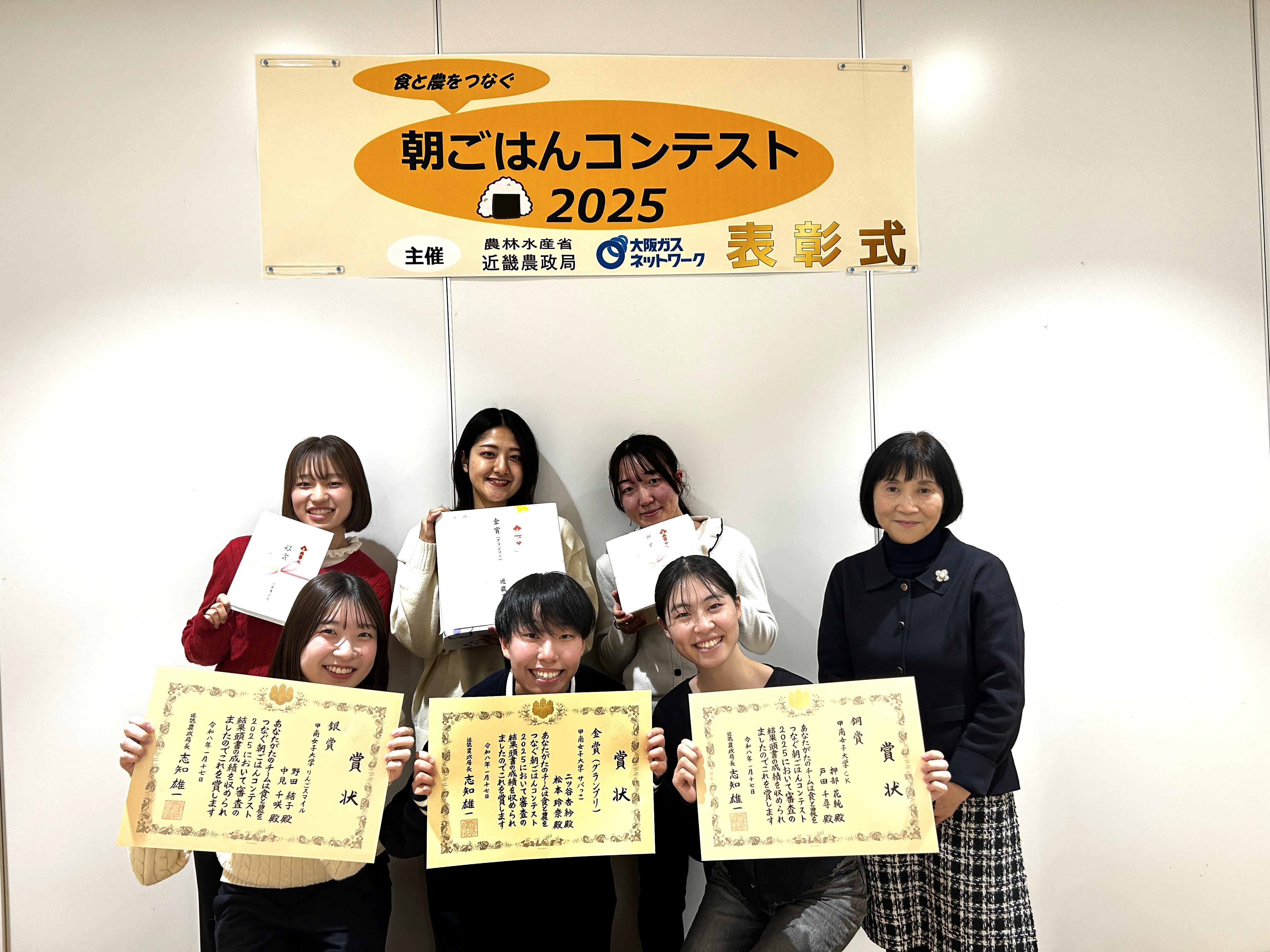 「食と農をつなぐ朝ごはんコンテスト2025」において、生活環境学科の食分野「濵口ゼミ」の学生3チームが、金賞、銀賞、銅賞を受賞しました