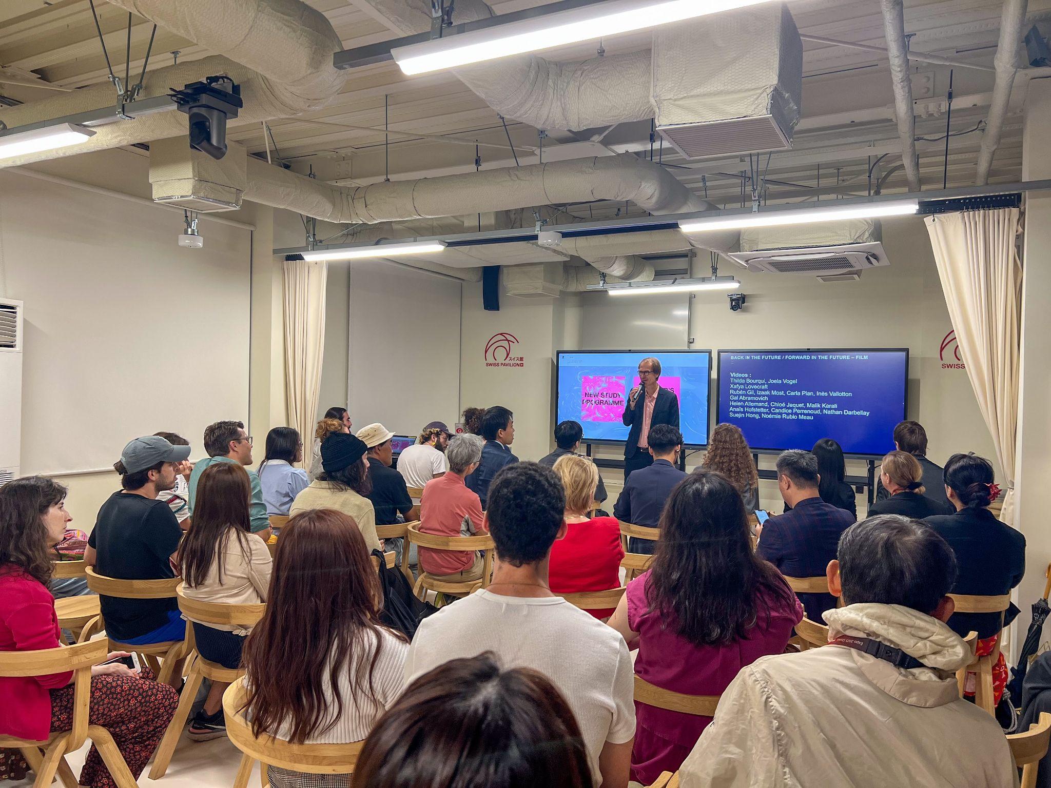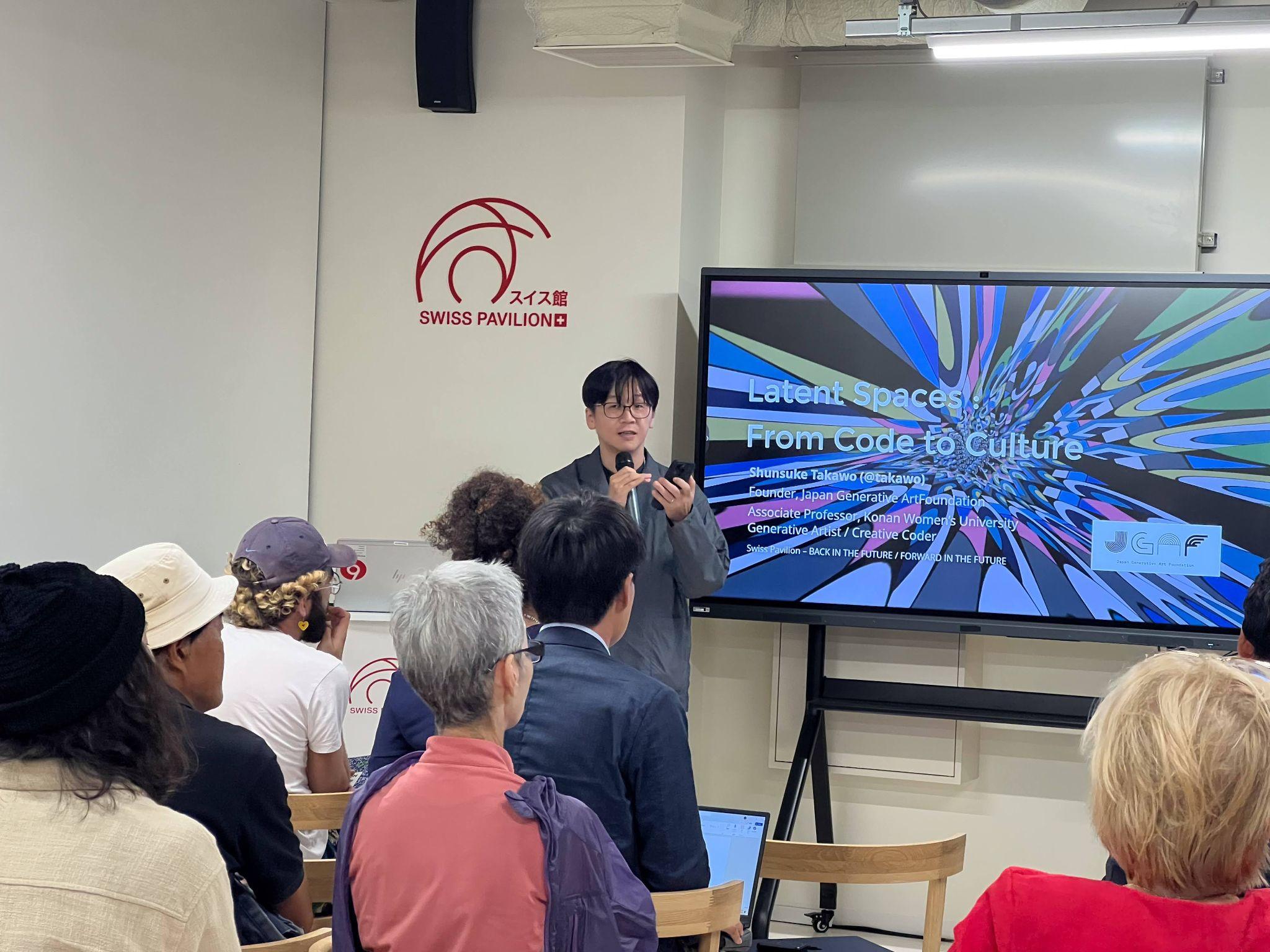 10月3日(金)、大阪・関西万博のスイスパビリオンで開催された公開イベント「Back in the Future / Forward in the Future」に、メディア表現学科の高尾俊介先生が登壇しました