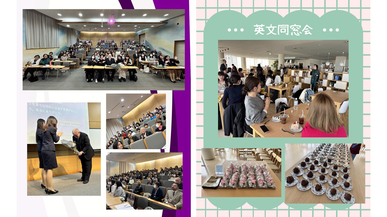 当日は、多くの卒業生が参加してくれ、笑いあり涙ありの最終講義になりました。Brown先生の最終講義の後は、英文学科・英語英米文学科・英語文化学科・国際英語学科の卒業生が集まって、第一学生会館3階のカフェSoleilで同窓会を開催いたしました。