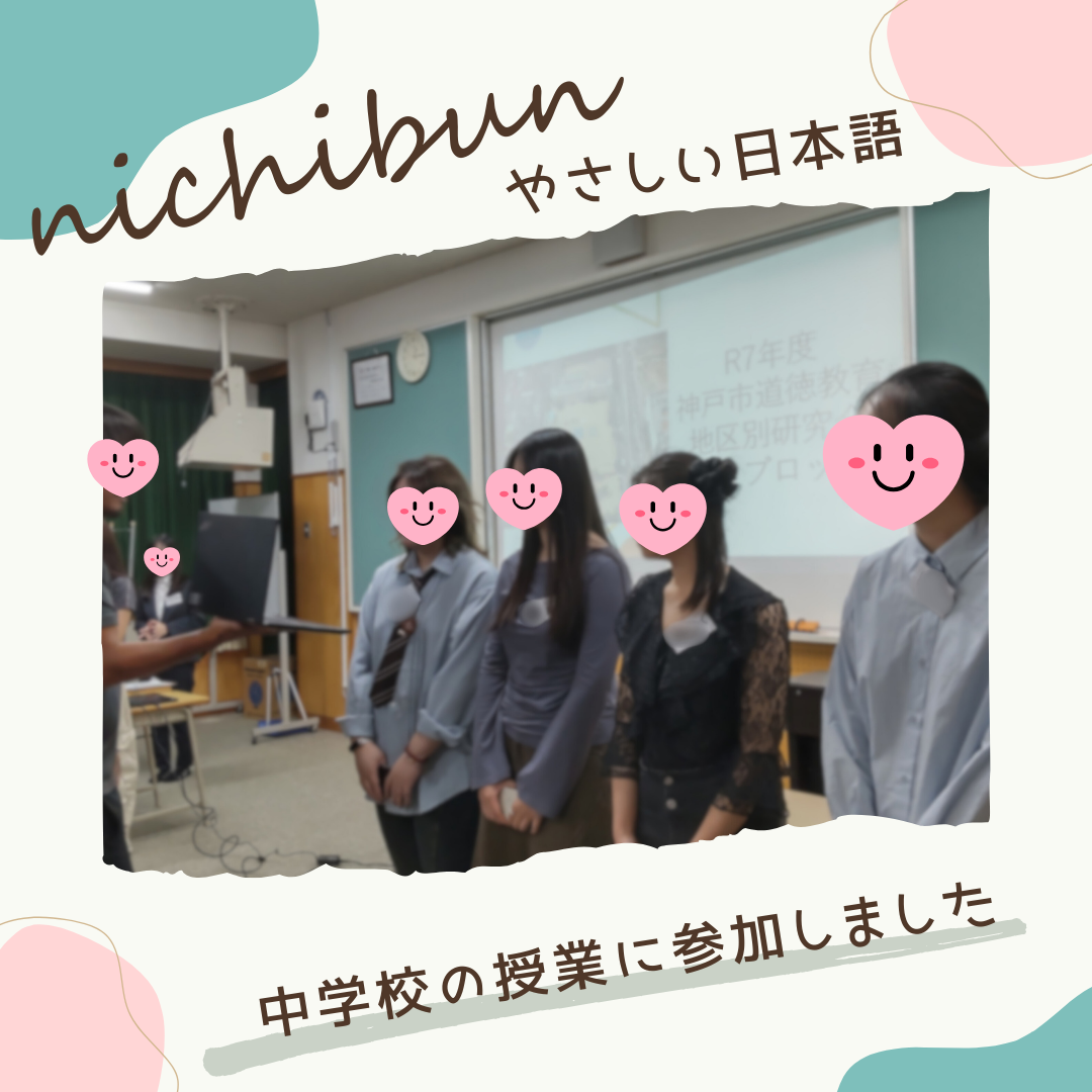 神戸市立の中学校に教諭として勤務している日文の卒業生に依頼され、彼女が担当する研究授業に留学生と日本語教育を学ぶ学生たちとともに参加してきました