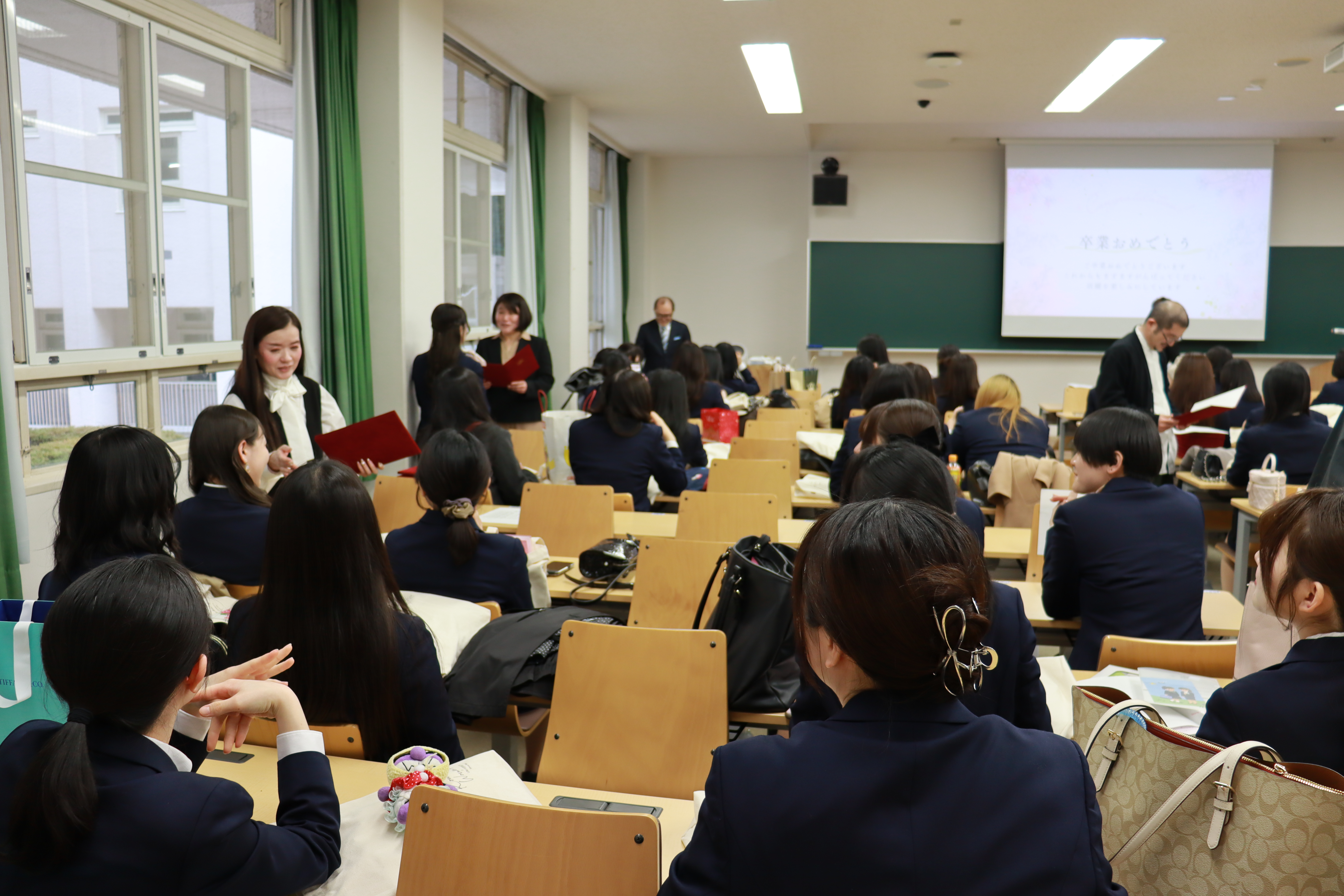集いの教室では、ゼミの先生から卒業生へ学位記を授与されました。
